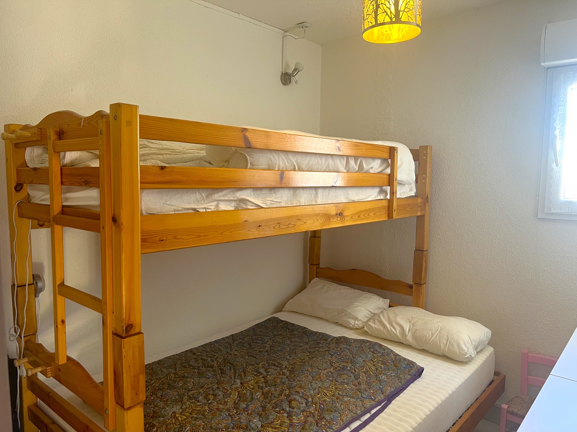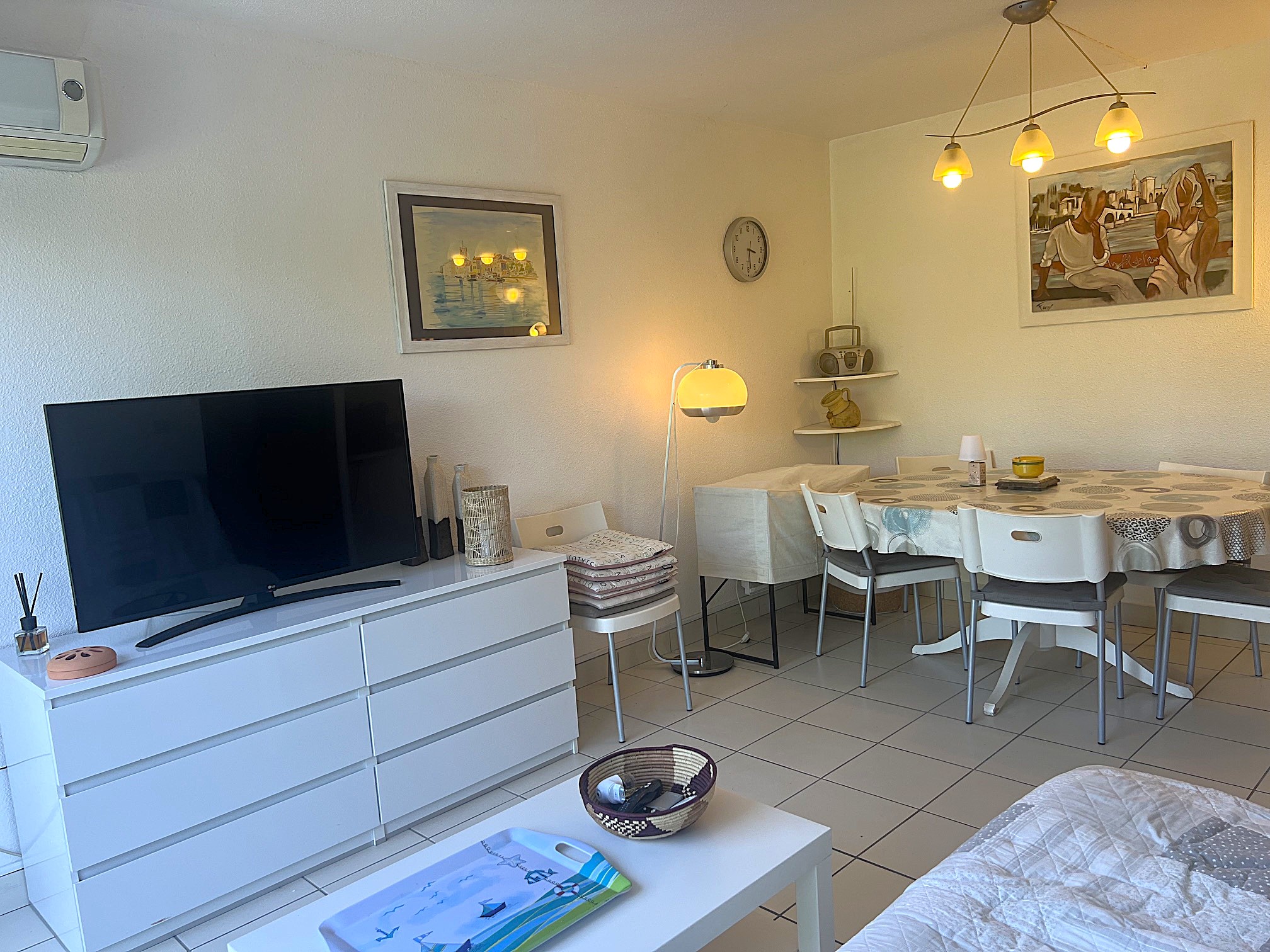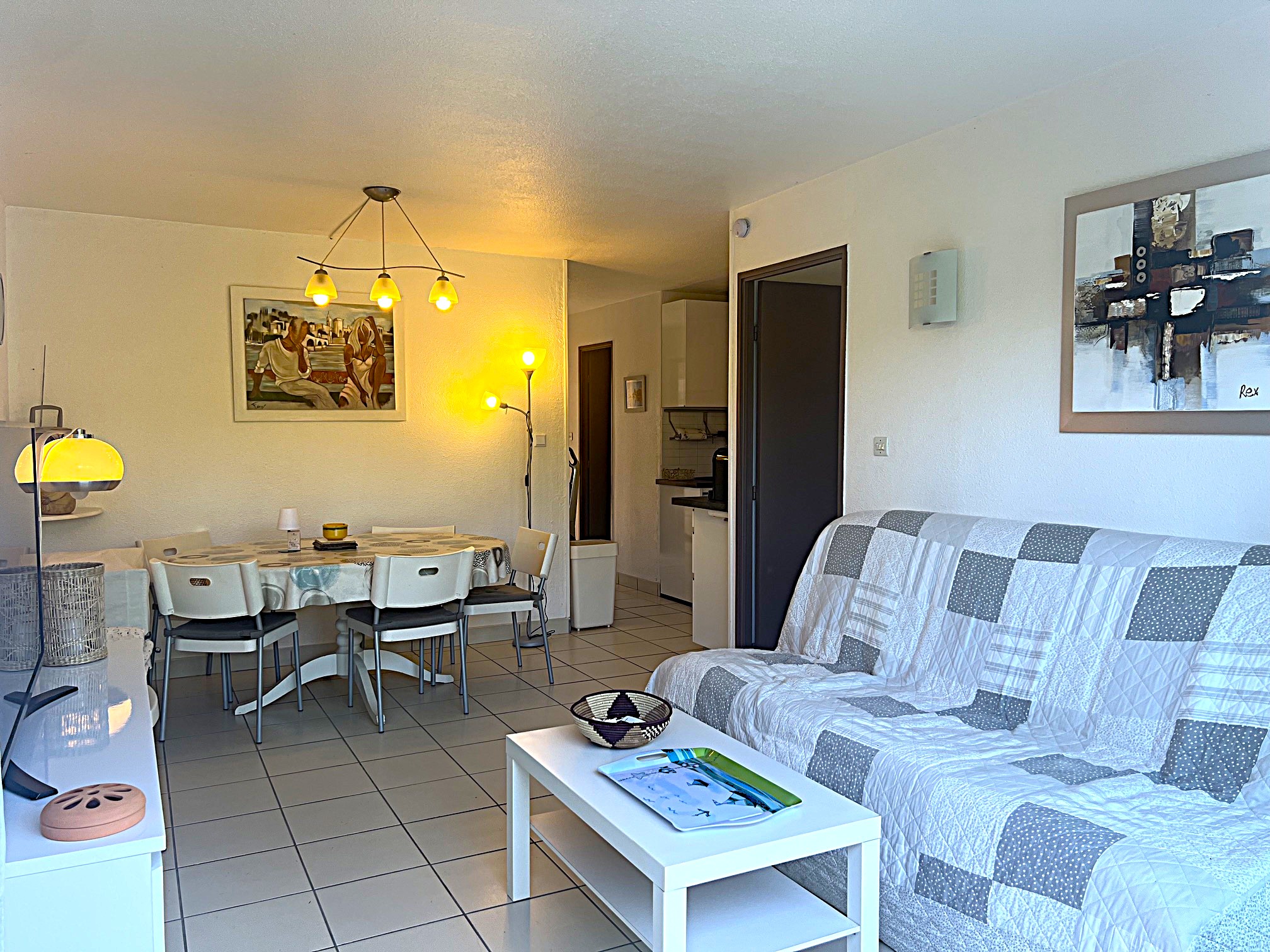Agence Immobilière – Location Cap d’Agde – Appartement 4 pièces en rez de chaussée ; composé de deux chambres avec 1 lit pour deux personnes, d’une 3ème chambre avec un lit en 120 + 1 lit mezzanine d’une personne, d’un séjour avec un canapé (sans couchage), téléviseur, climatisation. Salle d’eau avec douche et WC séparé, coin cuisine avec lave-linge, lave-vaisselle, réfrigérateur compartiment congélateur micro-ondes. 2 terrasses, une exposée à l’est et l’autre à l’ouest. Parking privé. Climatisation (30 €/semaine). Résidence sécurisée avec piscine Quartier calme et situé proche de la plage de la Roquille et des commerces.