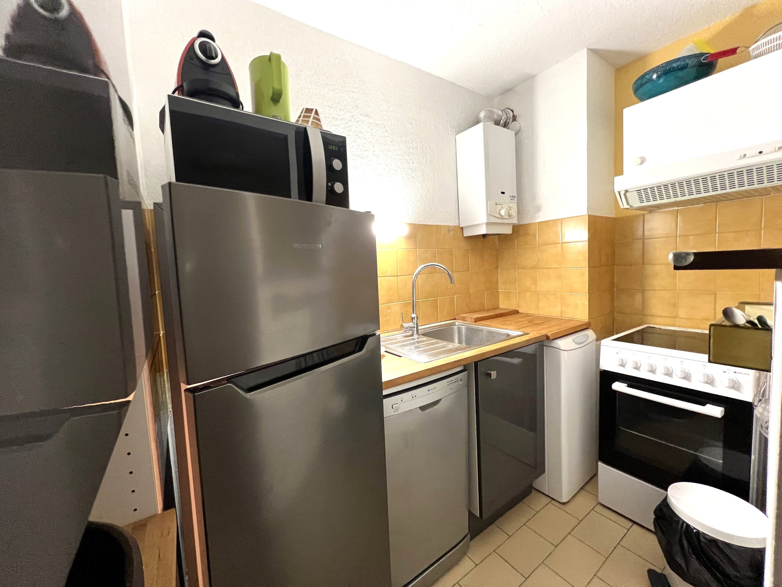 • Salle de bain avec baignoire et WC séparés, cuisine équipée avec lave-vaisselle, lave-linge, micro-onde.
